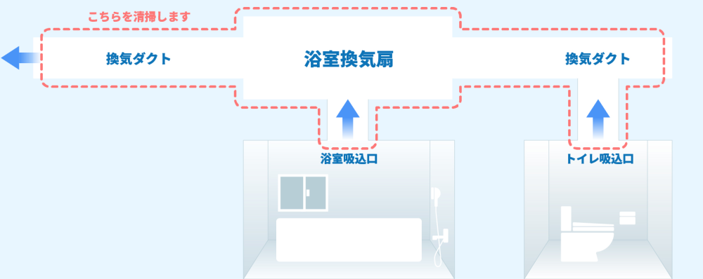 - ダクト配管の長さや形状によっては、清掃機具が届かないため作業範囲が部分的となる場合がございます。